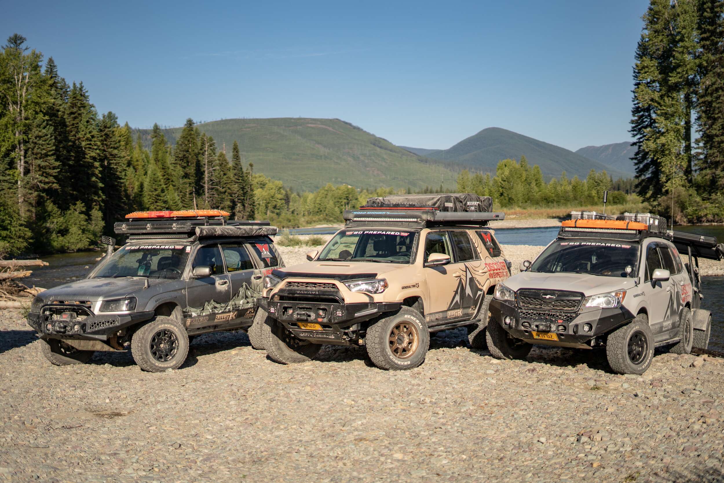 Waking up the next day we have Montana in our sights and take our time getting there. Halfway through Idaho we picked up Dillion from PLUC to join our expedition for a few days. Our first stop in Montana would give us early access to drive the “Going to the Sun” road in Glacier National Park. Our team decided to hike a few small trails and then head down the mountain to a private river front spot on the outside of the National Park. As you will see, we spent some time here making sure the rigs were ready for some hard miles ahead and took in the beautiful sights Montana had to offer.