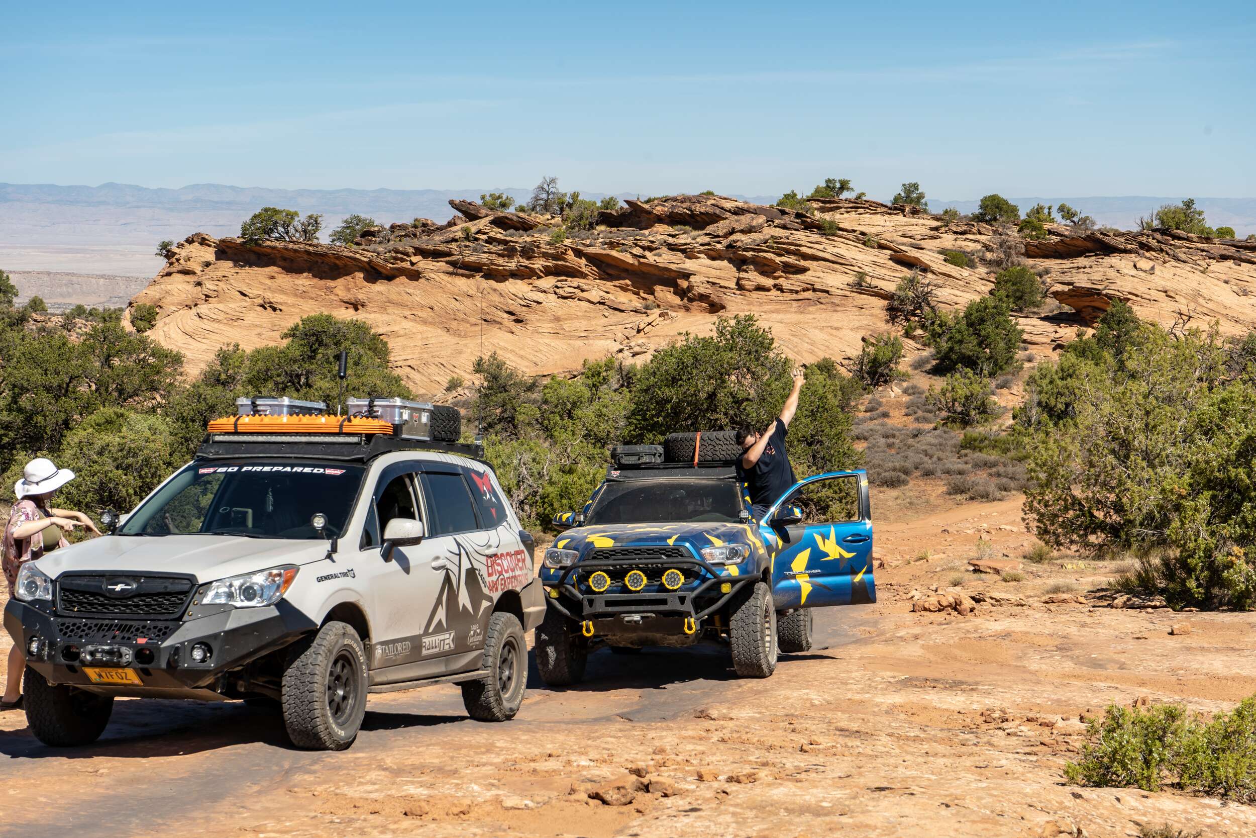 After Montana, we took the next few days to explore some highlights while we made our way down to Moab. While on our way to Moab, we did find that both Subaru Foresters needed some mechanical attention. Stopping off at a Subaru dealership in Salt Lake City, UT we were allowed to start tearing apart the rigs in the back parking lot. Rob’s forester had blown an axle seal and Eric’s forester had a leaking transmission line. Both of these fixes were thankfully achievable and we were able to complete them in just a few hours.